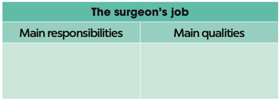 Write a paragraph (120 – 150 words) about the surgeon’s job. Use these guiding questions to help you